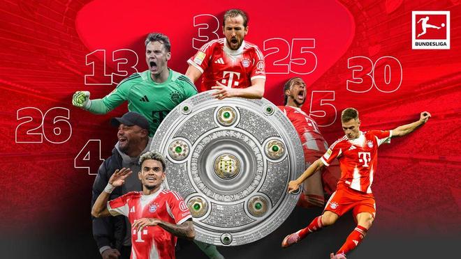 • 30:拜仁在第 30 轮主场 4-2 击败斯图加特,提前 4 轮锁定联赛冠军